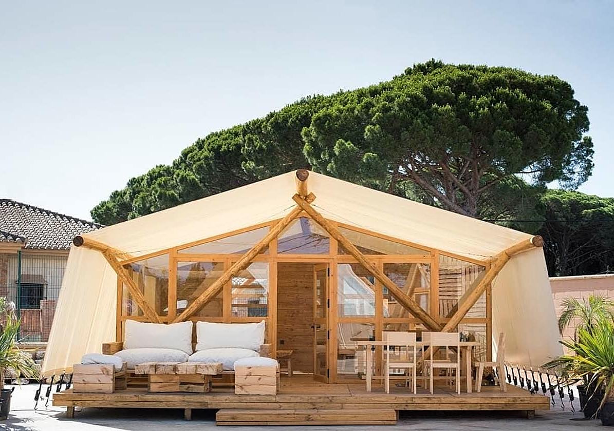 "Among the ideals are respect for nature and the quality of the materials used. The Almoraima tent, one of the spacious rooms in their glamping range, is built with chestnut wood from sustainable forests in Salamanca, which offers a unique protection against the weather."