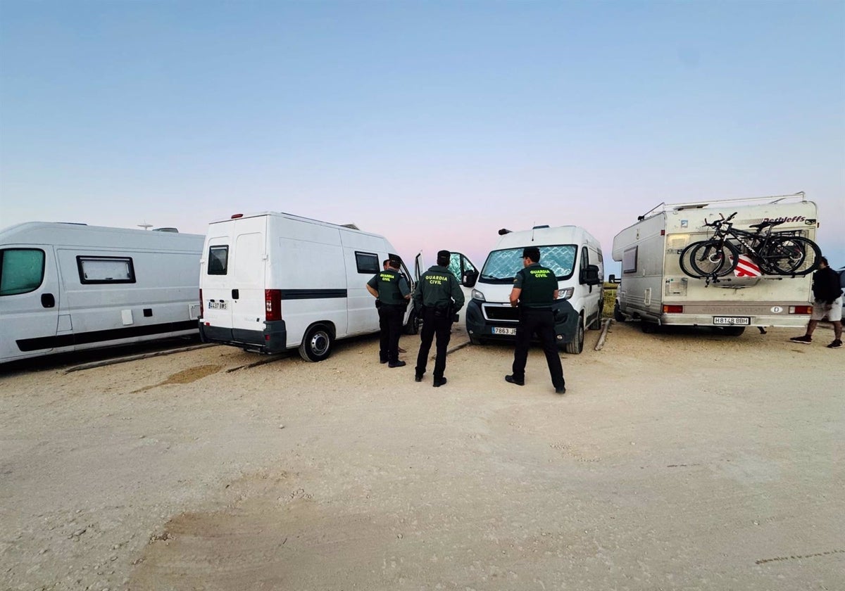 On Wednesday morning Guardia Civil from the main station in Tarifa, in collaboration with Local Police, broke up several illegal campsites that were located in the area known as Los Carriles , in the municipality of Tarifa , and in which more than 90 vehicles were identified and ordered to move on.