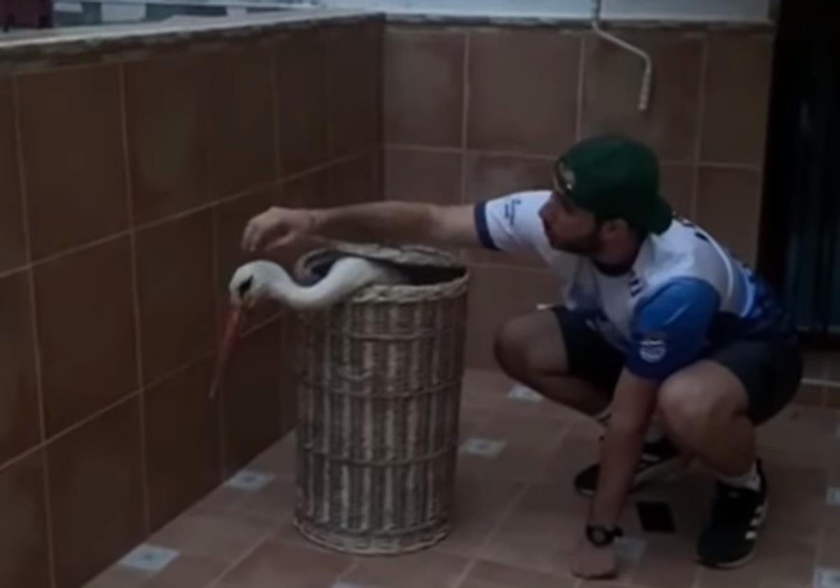 The video has gone viral on facebook and instagram and Jerez Zoo has thanked José for his efforts. "From our social media we want to give max visibility to these beautiful and endearing images whose lead role, in addition to a disoriented stork, is played by 'José with an accent on the é'. José is a young lad who did his internship with us last year as a tour guide looking after numerous groups of visitors, mainly schoolchildren. He continues to collaborate with our park in certain activities and this week he was summoned from his house because there was an out-of-sorts stork in his neighbour's patio. Here you can see how he handled it so that he could bring it to our facilities and have it looked after by our vets. Fortunately it was released the following day."