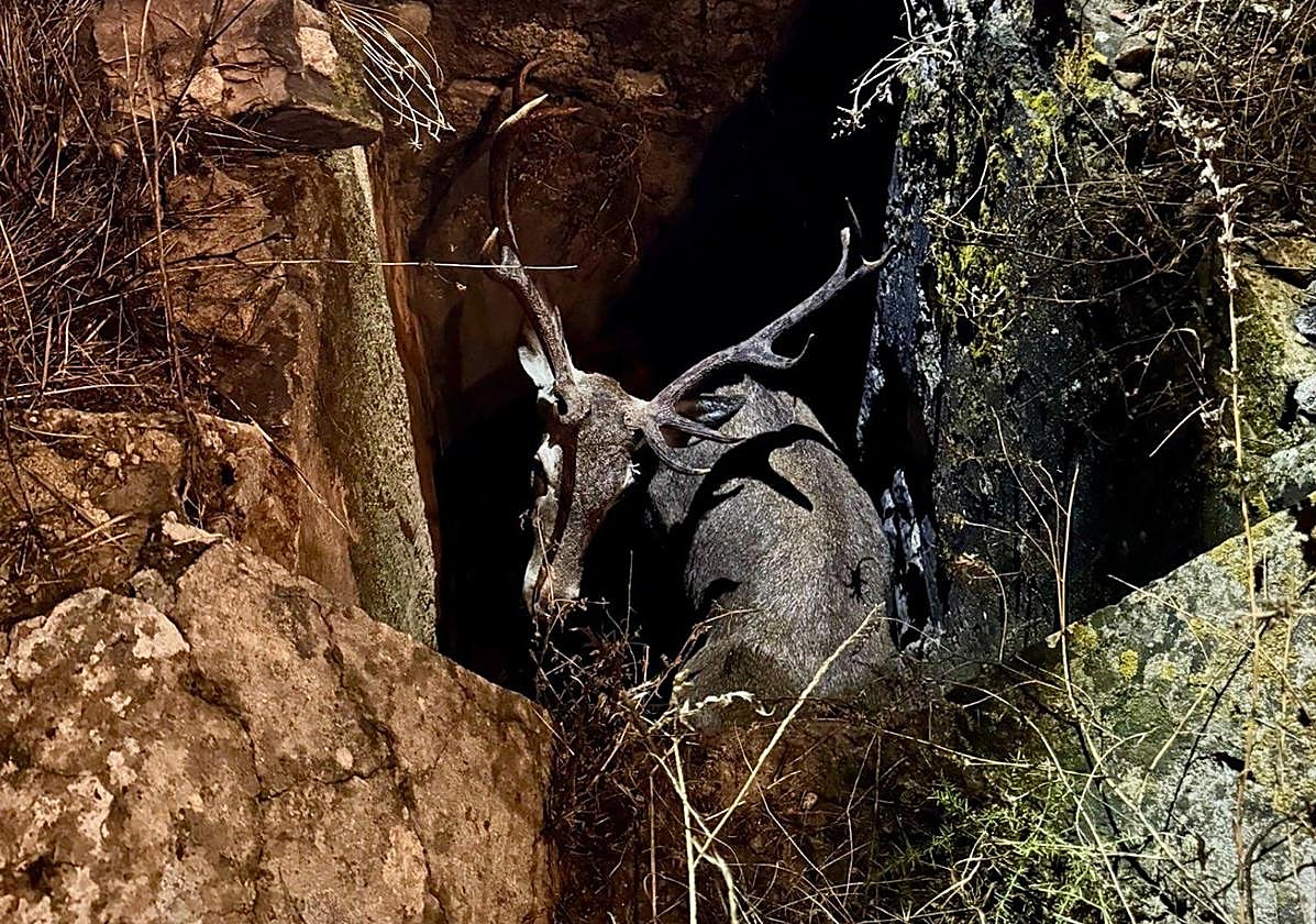 📹📷 Momento en el que el parque de #Jimena libera a un ciervo atrapado en una arqueta en la CA-8201, Km.3.