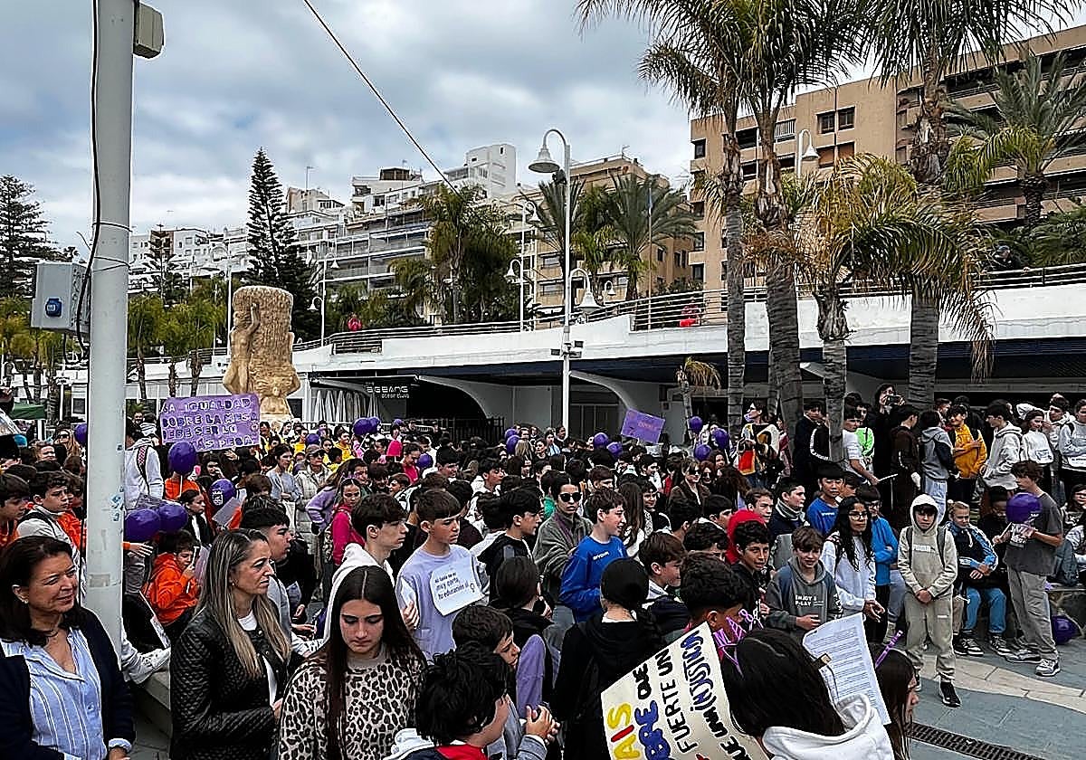 Pupils and representatives of the teaching teams of the Río Verde, San Miguel, Santa Cruz, Torrecuevas, La Noria and Las Gaviotas primary schools and Villanueva del Mar, Al-Andalus, Antigua Sexi and Puerta del Mar secondary schools, took to the streets to demand a fairer and more egalitarian society, under the slogan, 'Take the step, equality makes us move forward'.