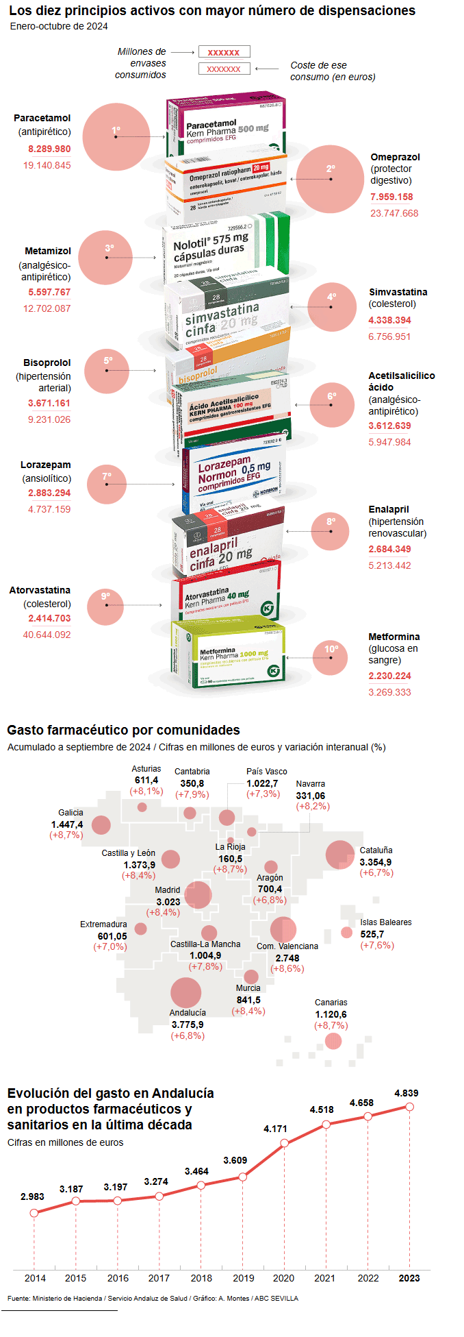 The ministry of finance pointed out that up to September - the latest accumulated data - 3,775,956 euros had been invested in Andalucía in pharmaceutical spending, 6.8% more than the same time in 2023.