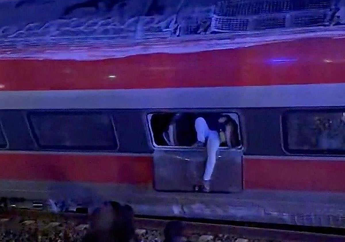 Another recording shows passengers trying to help those trapped inside the Iryo train by pulling them out through windows shattered in the collision, as the first ambulances arrive at the scene to begin transferring the injured. In the video and accompanying photographs, passengers can be seen moving along one side of the carriage, which is lying on the ground after the derailment. Meanwhile, several passengers have managed to escape and climb onto the roof of the carriage.