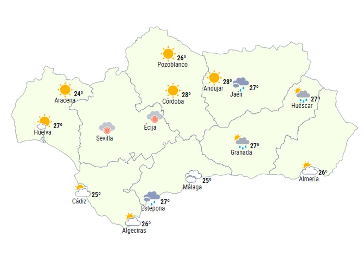 In some Andalusian provinces, such as Almeria, Cadiz and Huelva, there will even be cloudy skies and maximum temperatures below 30C. Granada and Jaén can also expect some showers on Sunday, with maximum temperatures between 29C and 26C. Malaga province and the Costa del Sol might reach maximum values of no more than 30C over the weekend.