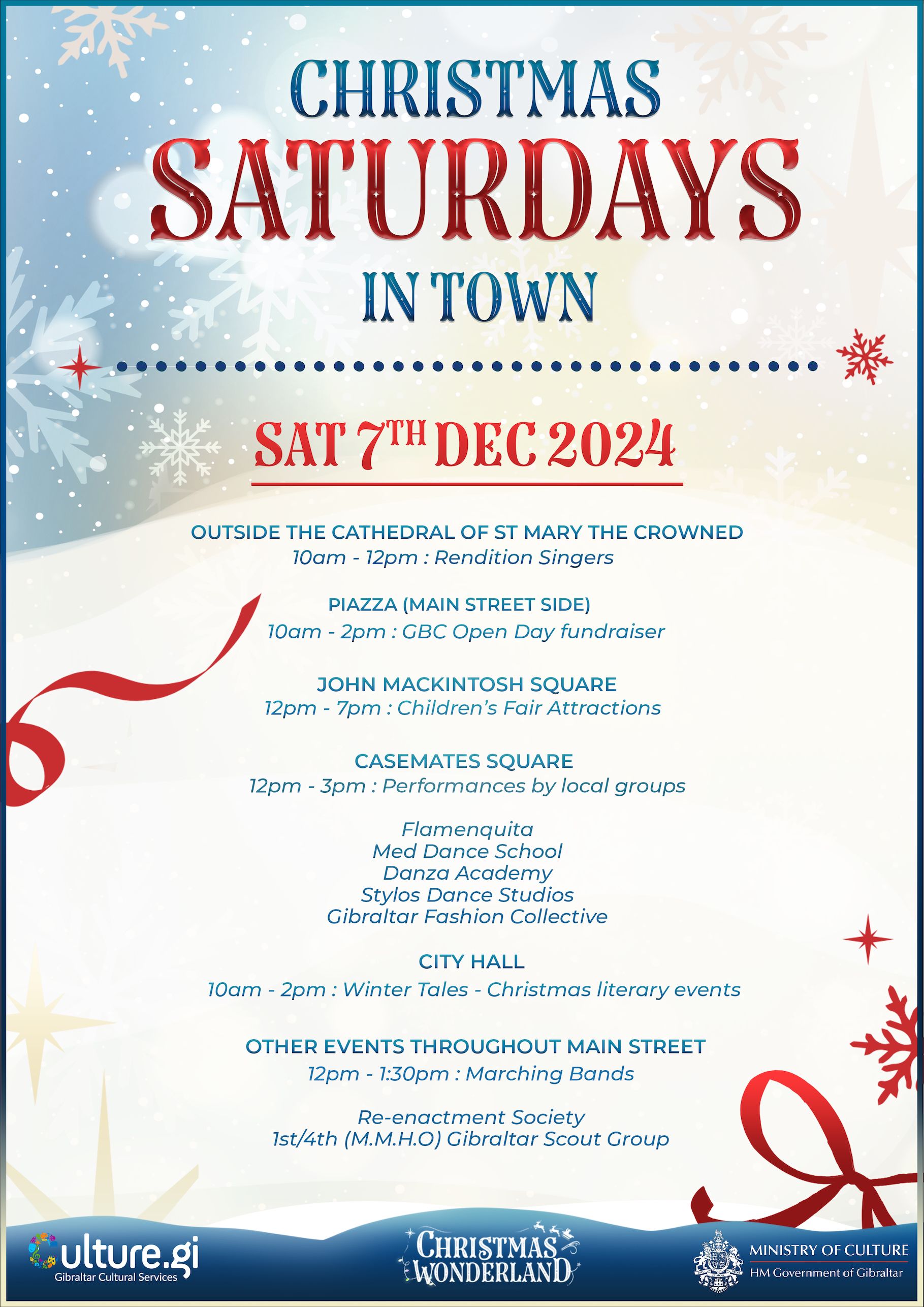 Gibraltar Cultural Services is planning events to get the Rock's residents and visitors in the Christmas mood on the next two Saturdays.