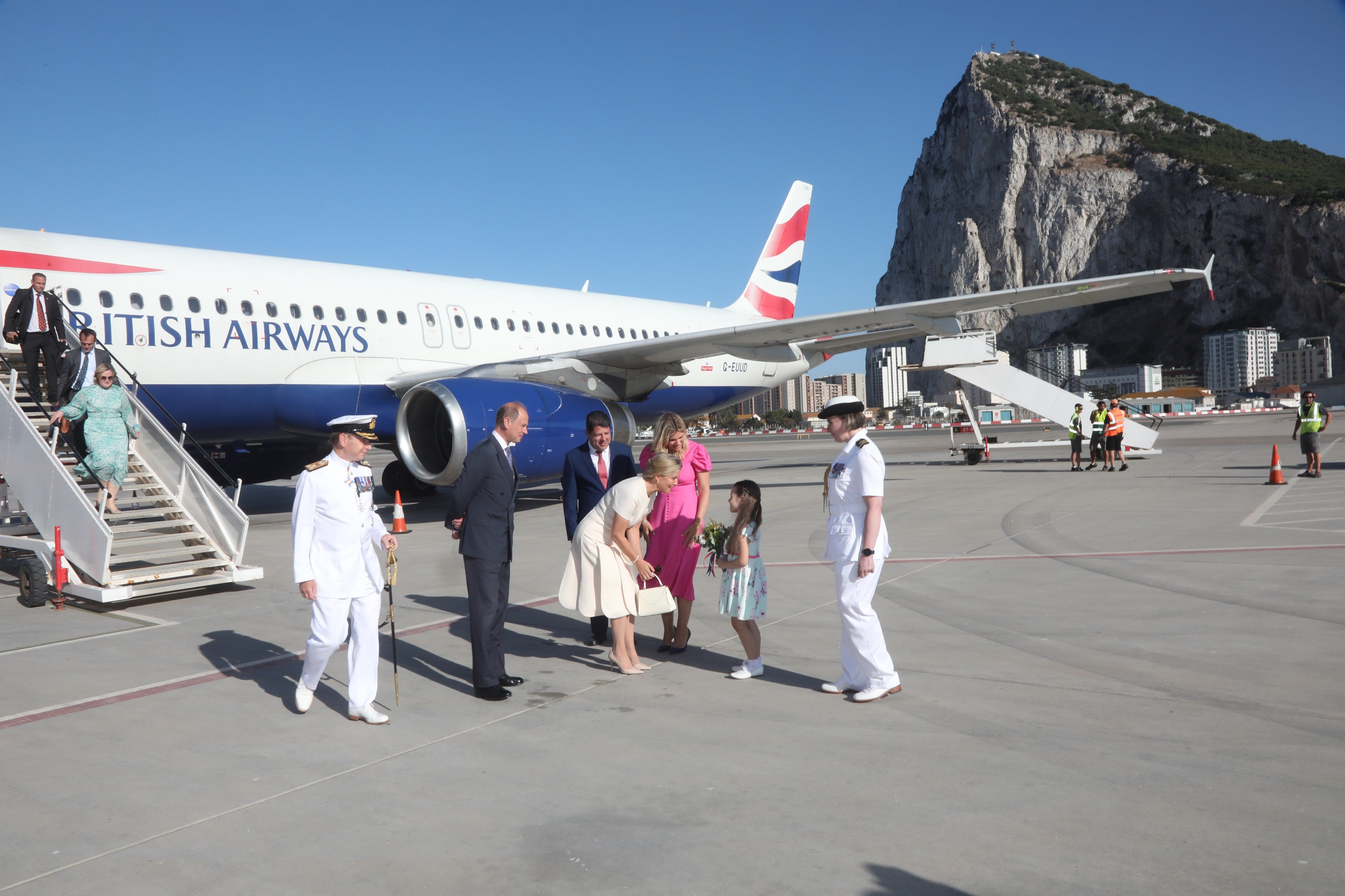 The Earl and Countess of Wessex arrived in Gibraltar early yesterday evening, several hours later than expected due to a technical issue with their plane, which returned to the UK as a precautionary measure.