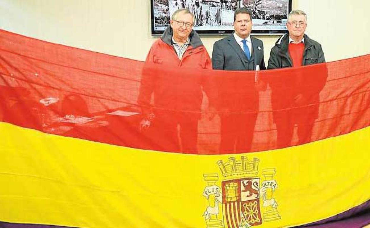 The event was very well attended and the organisers were delighted that Xavier and Luis Castro, the sons of the ship’s captain, had travelled down from France especially to take part, and that Gibraltar’s chief minister, Fabian Picardo, was also present. He said afterwards that he had found it very moving, as the ship’s last flag had been loaned for the occasion by the Gibraltar National Museum: it had been sewn by his grandmother and the emblem designed by his grandfather, and this was the first time he had seen it outside a display case.