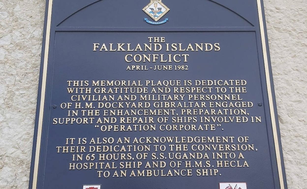 The Gibraltar Heritage Trust unveiled a plaque by Ragged Staff Gates on Tuesday to commemorate the 40th anniversary of the Falklands War and the role played by civilian and Naval Dockyard workers who converted the SS Uganda and HMS Hecla into hospital ships. The Uganda sailed from Gibraltar on 19 April 1982.