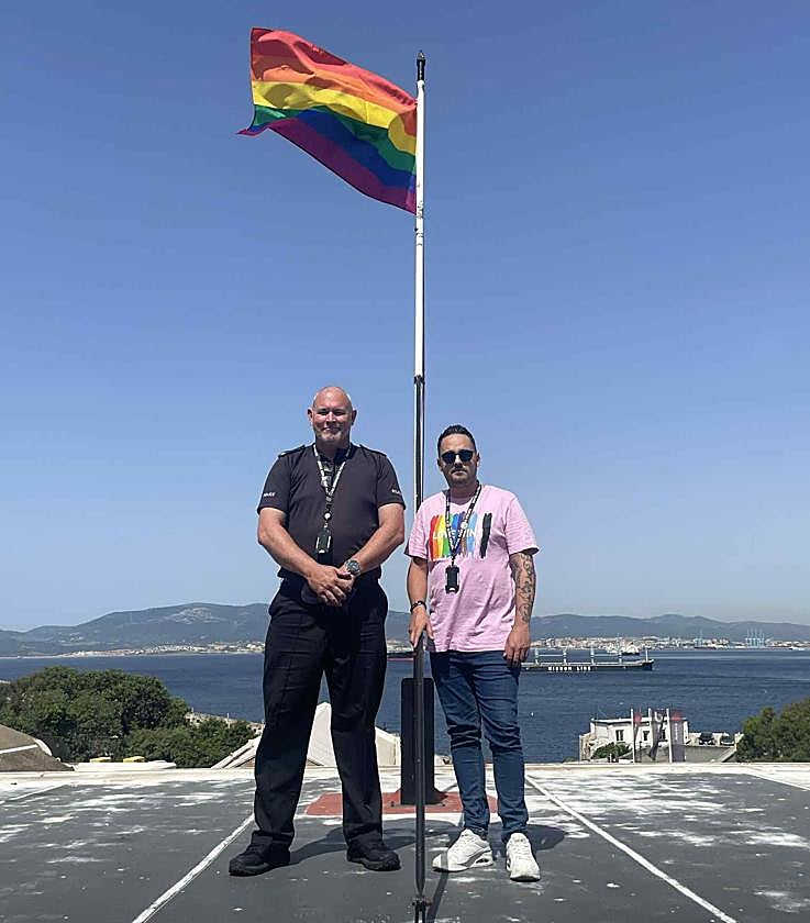 Pictured is RGP civilian staff member and Vice Chairperson and Events Lead for the Gibraltar LGBTQ+ Committee, Raygan Martinez-Gaivizo and Police Constable Jason Russell.