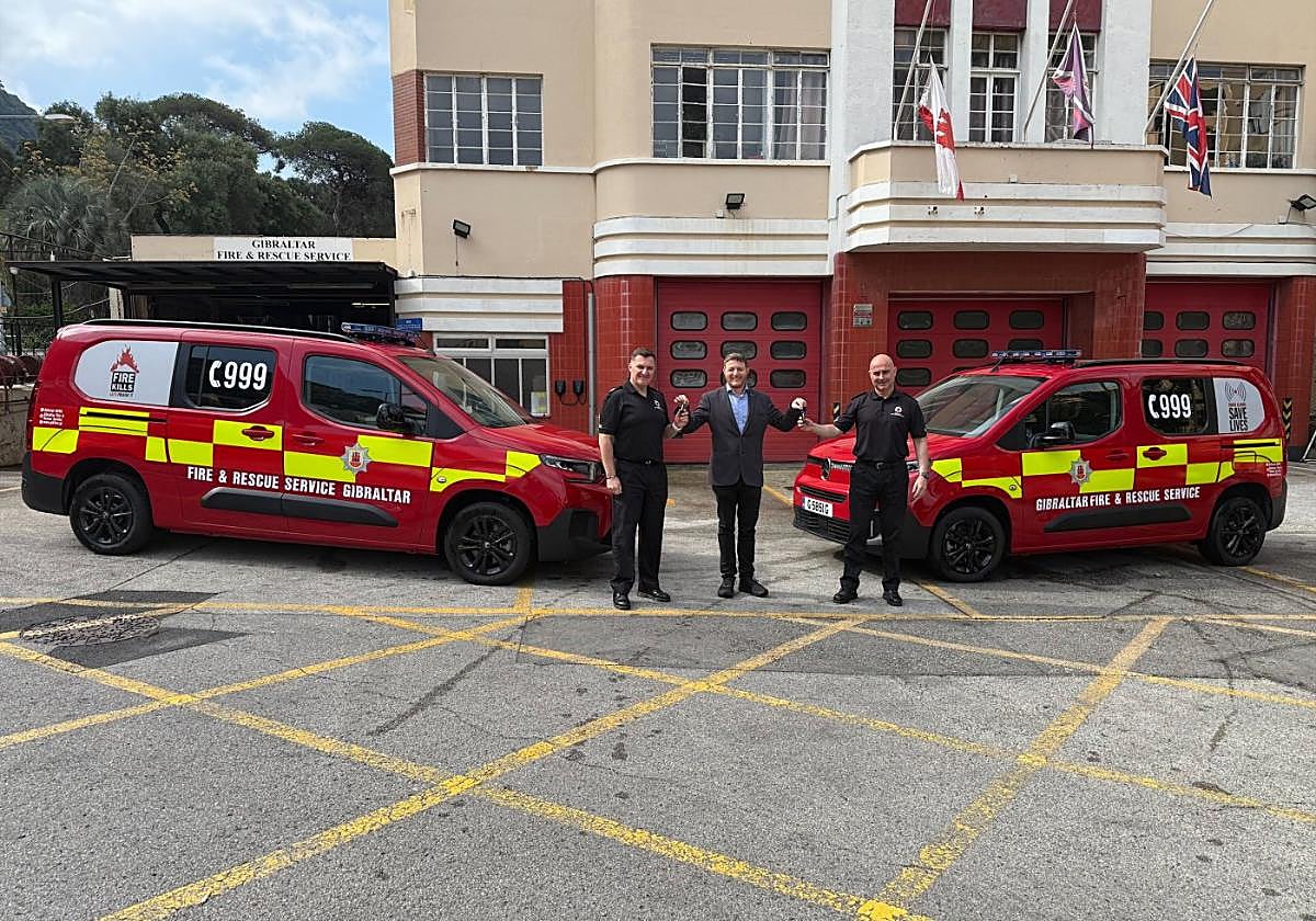 The two Citroen e-Berlingo fully electric vans are part of the GFRS' frontline support assets and reflect Gibraltar government's commitment to reducing carbon emissions and promoting environmentally friendly practices across public services.