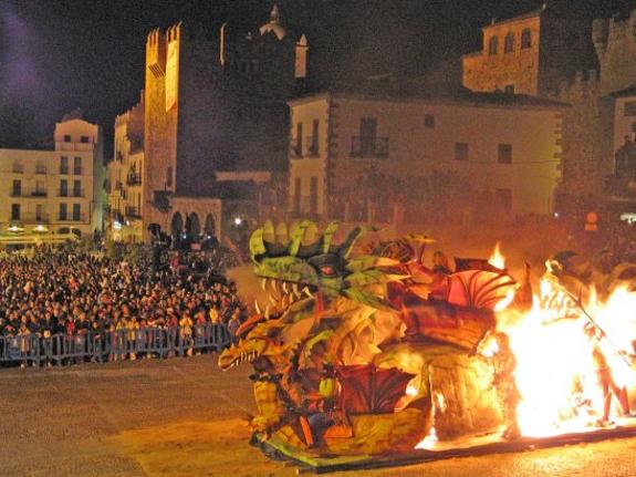 In Cáceres, San Jorge festivities take the form of a grand parade including a figure representing the dragon that is later burned.