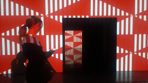 How are we supposed to react? was written all over the faces of a group of 'art consumers' leaning against one of the walls, in an ostensibly relaxed posture, as they observed a permanent stream of syncopated abstract images, ranging from lines reminiscent of zebra crossings to colourful target symbols.