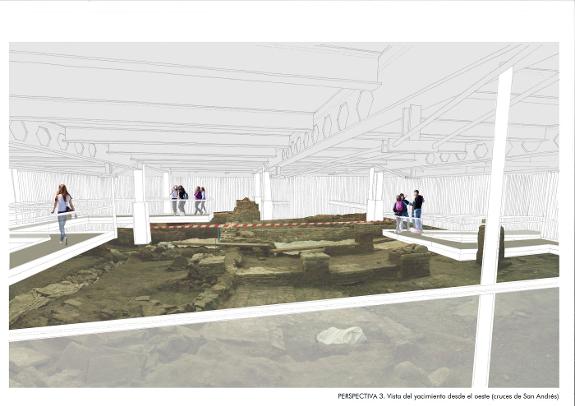 Above the ground, the architect has designed a hanging path which will be suspended 80 centimetres above the archaeological remains.