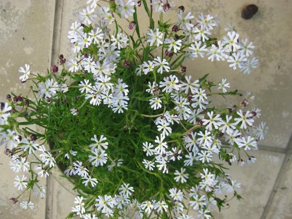 The stems are brittle and sticky, as are the aromatic, narrow leaves and the white, pinwheel flowers only open when the sun goes down, releasing their dense perfume all night long.