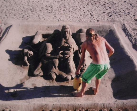 It was not too long before he decided to return to Spain, although his injury made it difficult for him to work for long periods. It was during this time that he came across an "old guy" who was making a huge sand sculpture on the beach. John got chatting to the artist and ended up earning a few coppers in return for collecting the water from the sea. John began helping the artist regularly and soon became familiar with the art of sculpting with sand.