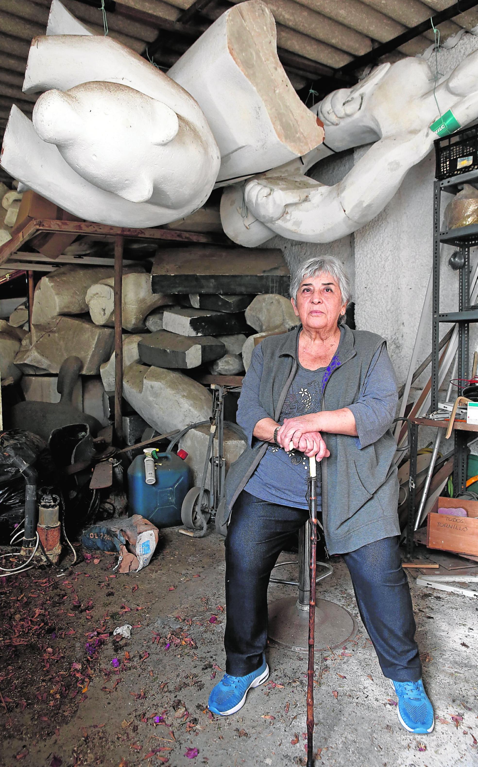 She sees nothing remarkable or extraordinary about this. It's natural for her, she doesn't know anything else. But to an outsider, this place is a treasure trove, with small and large figures everywhere, created in stone, bronze, plaster and marble. There is a kiln, a machine for enamelling ceramics, a table for drawing and a large room where the moulds of the gigantic urban sculptures which stand around the world are stored in pieces. Like the immense bear that hangs from the ceiling in an image which is as impressive as it is surreal, below which she poses for this report. But Elena Laverón has not set foot in this space for quite a while.