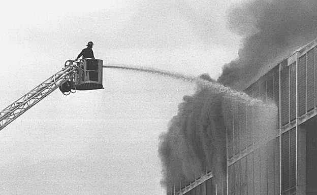 Fire broke out shortly before 2pm. It immediately spread throughout the building, which contained large quantities of cork, paint, wood and expanded polystyrene, all highly combustible materials. Fifteen units of the Seville fire brigade were quickly on the scene but the fire was fierce and the building’s structure became a burning torch in minutes. The thick column of smoke could be seen from practically everywhere in the city. All the workers inside managed to leave without suffering serious injuries, although the last two were evacuated by ambulance with symptoms of smoke inhalation. More than a thousand workers gathered around the burning building, many of them weeping with helplessness.