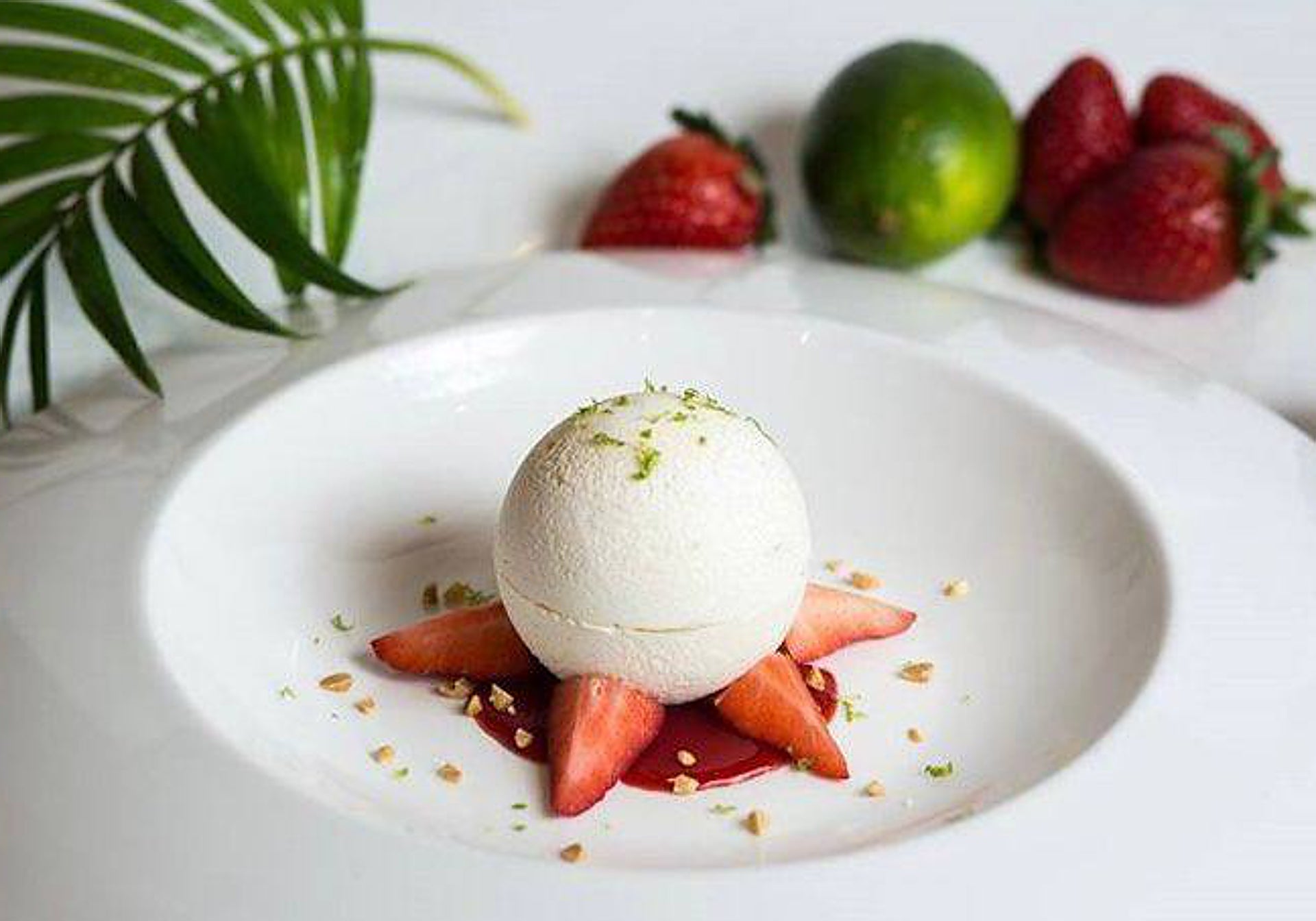 "I saw a teacher I had, a great pastry chef, and I gave him my version. "French meringue that we bake at a low temperature, in a hemisphere mould (which we then join together). On the base there is a strawberry coulis and, inside the meringue, vanilla cream cheese, natural strawberries and homemade strawberry ice cream. On top we finish with lime zest to give it freshness". In her experience, "it is a dessert that is liked for its freshness and its play of textures".