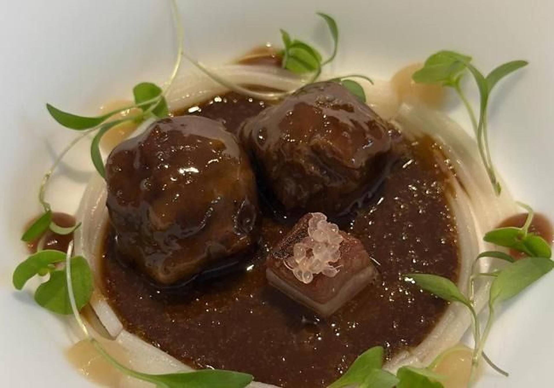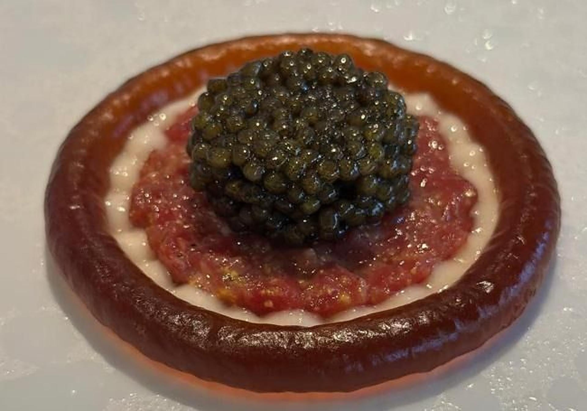 A groundbreaking beef tartare that can only be tasted on the 'Entorno' menu. The contrast of textures and flavours is found in the beef consommé gelée with marrow and a touch of caviar that adds saltiness. Great!