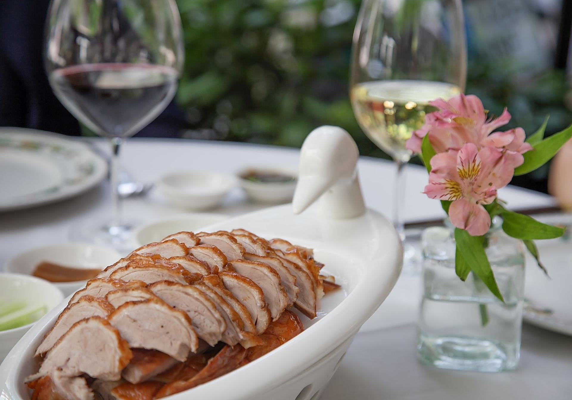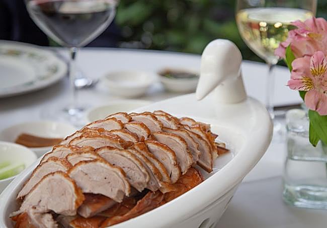 Peking duck: This is the restaurant's star dish and the duck is cut in full view of the diner. The preparation and tasting of this dish has three parts, the caramelised skin, the juicy and seasoned meat and wrapped in very thin pancakes.