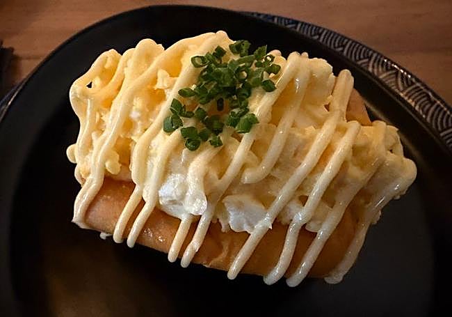 A classic Japanese sandwich made with a very soft milk bread and grilled to give it a golden colour is the base for a soft egg cream with mustard. Very balanced in terms of dairy flavours.