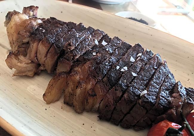 Being in a restaurant specialising in Andalusian charcoal, the oak chippings could not be omitted for the preparation of steak. Juan is a perfect connoisseur and the Friesian beef entrecote with 30 days of maturation is perfect.