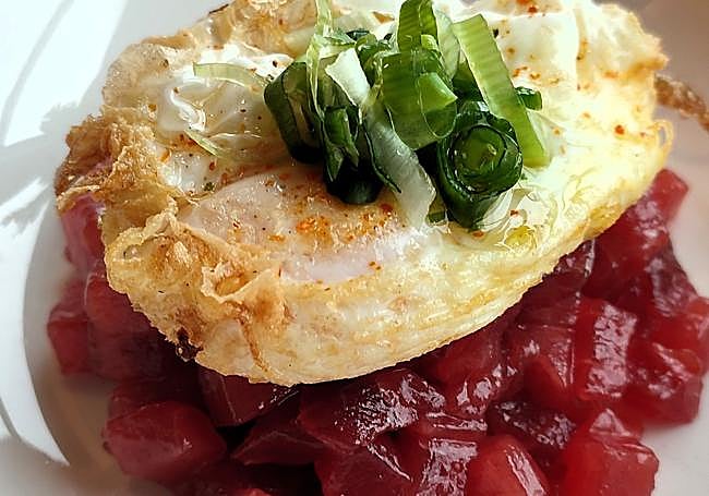Óscar once again expresses his skill in choosing a high quality tuna loin and giving it the exact cut to make it stand out for its flavour. The fried egg is in charge of balancing the texture.