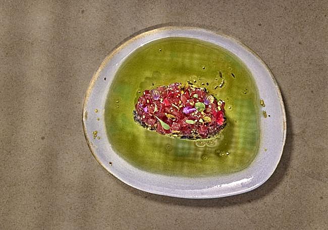 A simple, refreshing and tasty dish. An avocado at its optimum ripeness is the base for a tuna tartare seasoned with an infusion of extra virgin olive oil and parsley. The chromatism and colourfulness says it all.