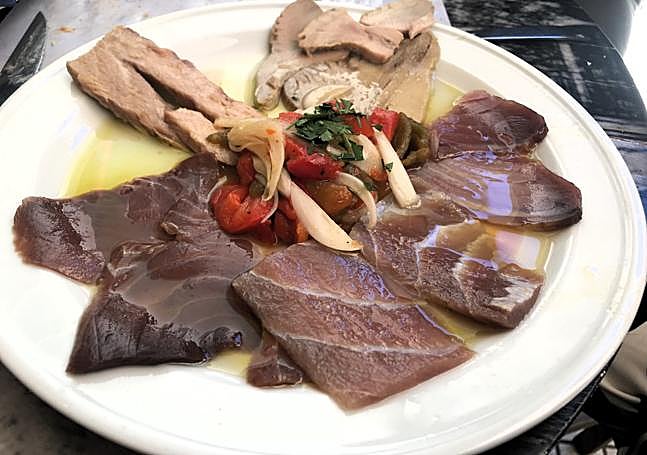 This assortment has the peculiarity of combining ventresca, sirloin, smoked tuna, flank and sometimes a little sarda. Sarda, although it has a similar flavour to tuna, is a different fish. Very good.