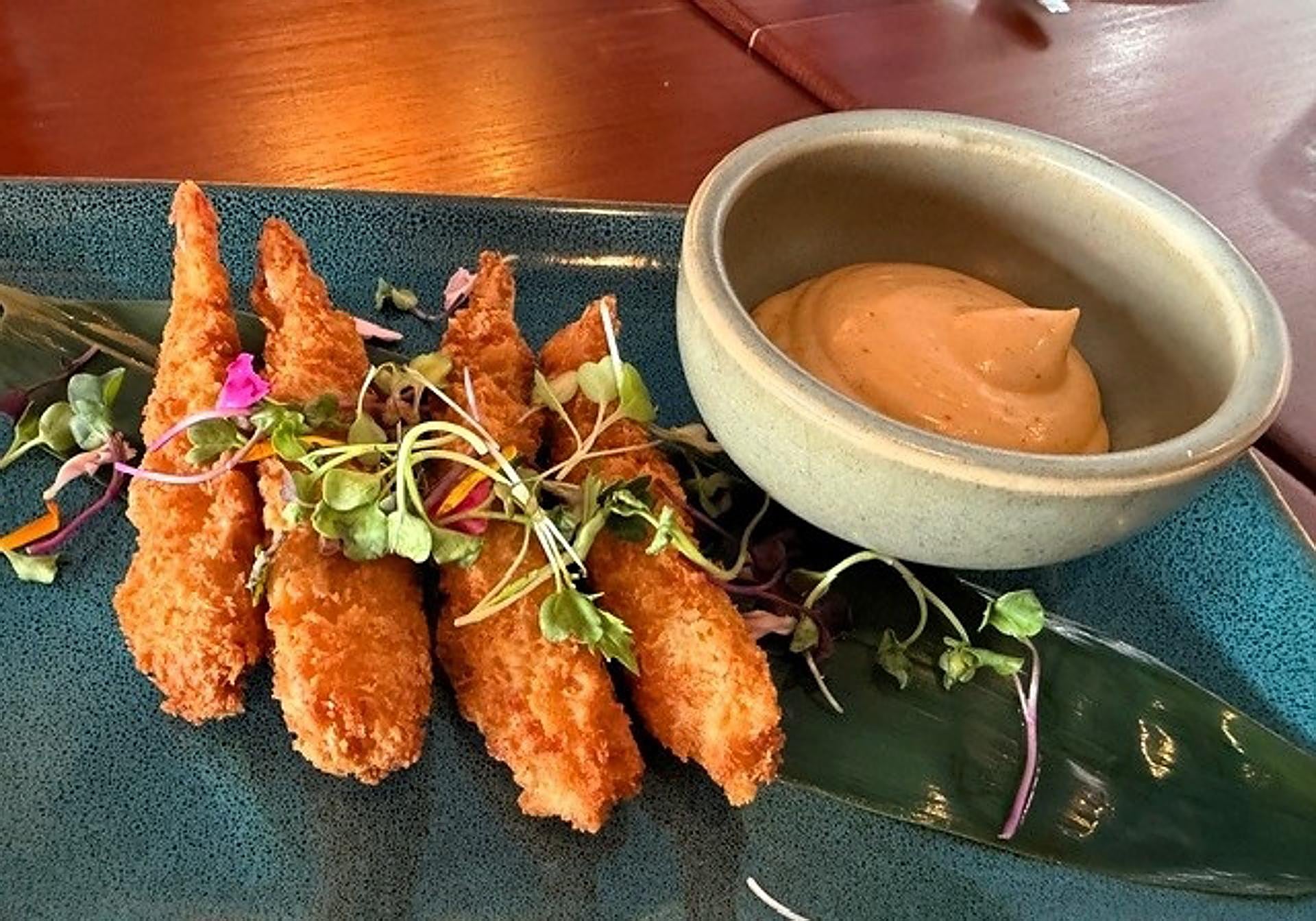 A dish designed to be shared and especially for those who do not like it raw. Good-sized prawns, battered and fried just long enough to be crispy, warm and juicy.