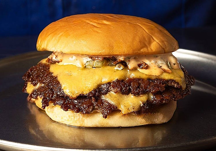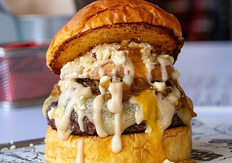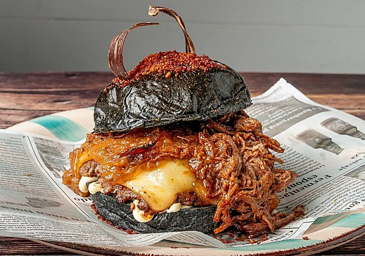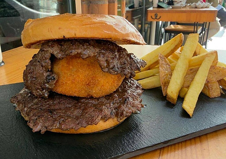 A restaurant on Calle San Ginés, in Torremolinos, offers this version with Juanito Baker’s black brioche bread, two smash burgers of its own creation, Angus beef tenderloin, smoked Monterrey cheese, homemade bone marrow mayonnaise, Finca Los Rosales halal cured meat, homemade tomato jam and low-temperature, slow cooked ribs.