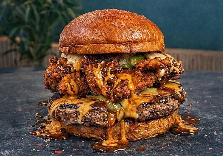 Spicy and at the same time sweet and crunchy. This is how the burger at Momag Burgers (Fuengirola promenade) is presented, with 200 grams of Galician blonde smash, double melted cheese, 250 grams of crispy Momag buffalo chicken, homemade pickles, hot honey, chilli mayo, BBQ glacé, secret sauce and red diamond crunch on Momag bread.