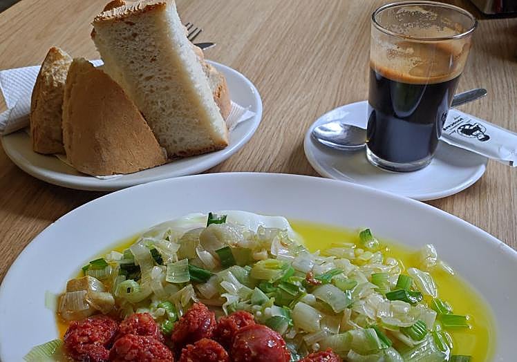 To accompany this is the essential 'cateto' bread from the Hijos de Ana Hevilla bakery, perfect with the egg yolks. Despite time passing, this breakfast never goes out of fashion and every weekend hundreds of eggs are fried, a reflection of its undeniable popularity.