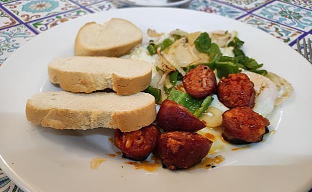 In Ardales, El Cruce restaurant has turned its so-called Spanish breakfast into one of the most popular morning rituals among those passing through the Guadalteba area or heading to the Caminito del Rey. Its not a new addition - it's been on the menu for over a decade and a half - but the constant passage of tourists and cyclists has catapulted it to fame. Its strength lies in its authenticity: local chorizo sausage, free-range eggs and a garnish of peppers, onions and garlic fried with Ardales oil, as well as several slices of bread to dip in egg yolks as per tradition. Everything comes from the immediate surroundings, from the vegetables from the Antoñuelo orchard to the local cured meats from the Cuartel. The idea started thanks to a regular customer and, since then, it has become one of the morning hallmarks of this family-run establishment that has been open since the late 1980s.