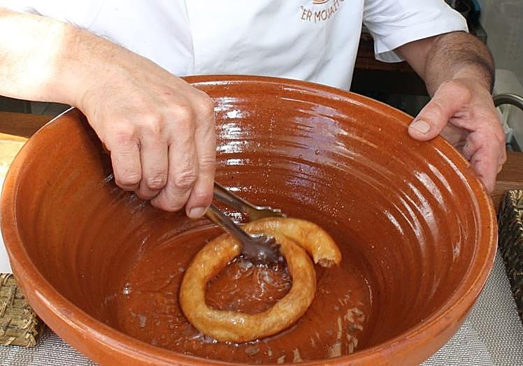 In Ojén, breakfast tradition is called 'Er Mojaíto'. For almost fifteen years, this small bar has kept a unique custom alive: dipping the churros in a basin of salted water as soon as they come out of the fryer. The result is churros that are crunchier on the outside, with a slightly thicker batter and more satisfying than the traditional 'secos'. Jorge Gómez Bermúdez, heir to a tradition that his mother used to practice in a nearby shop, prepares each churro individually with tongs and only on demand. The experience requires eating them right there, standing up, as is the custom, while another basin placed on the floor collects the salty drops. The origin of this culinary ritual seems to be linked to times of scarcity, when dipping fritters in water and salt helped to tackle hunger. Today, locals and visitors still come to try these unique churros in the province of Málaga.