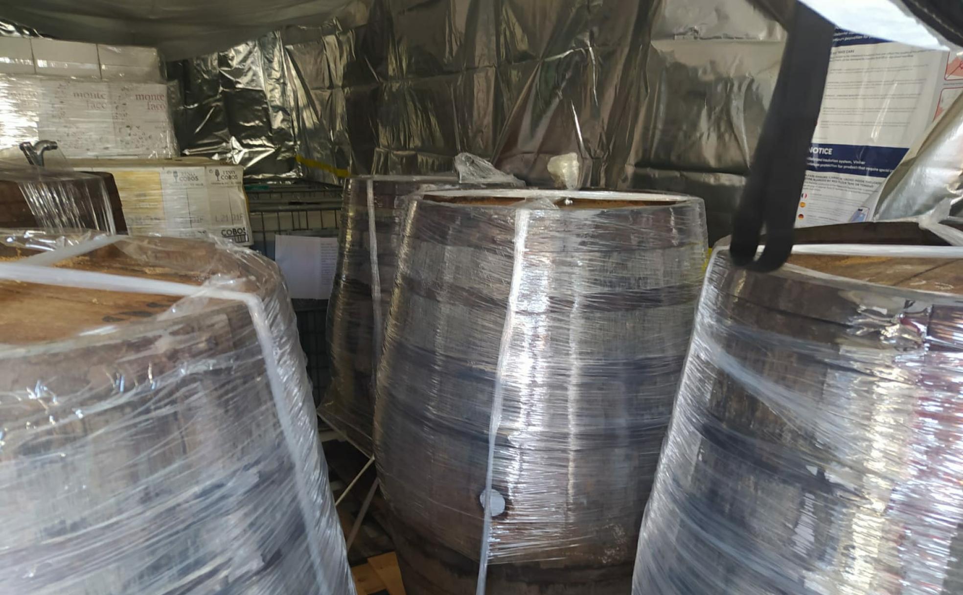 The delivery went ahead: five American oak casks of 508 litres travelled from the port of Algeciras inside a container with special insulation.