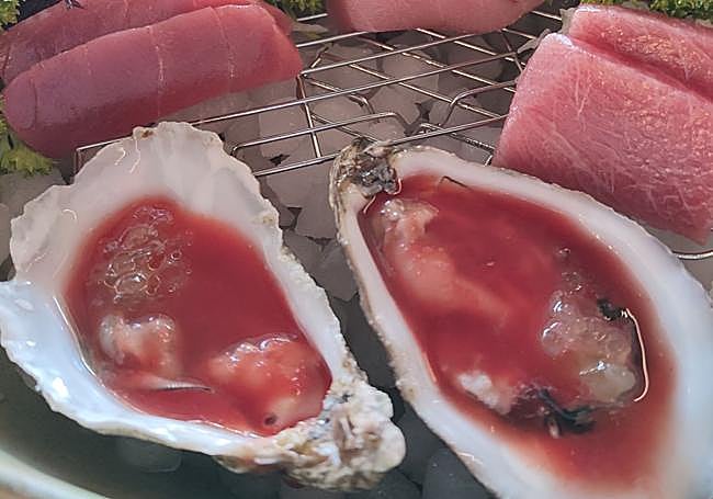In the middle of tuna season, nothing better than a trilogy of tuna sashimi. Three different cuts, perfect in terms of thickness, from three different parts of the tuna and some very tasty and salty oysters.