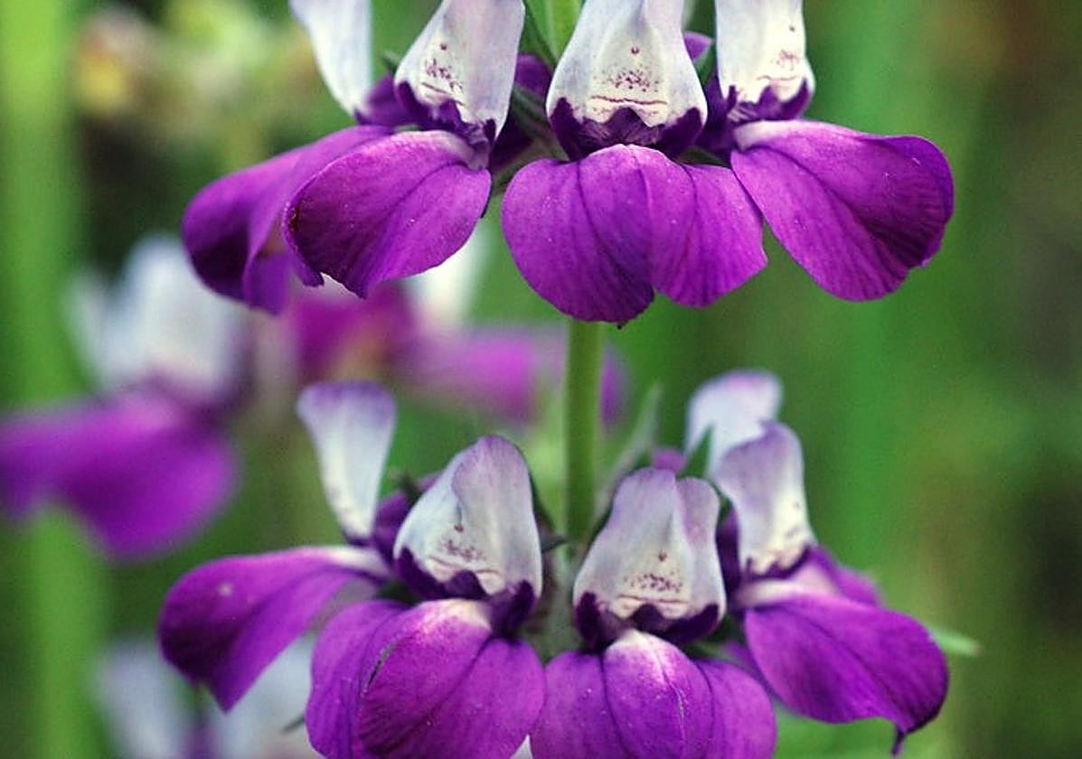At around 30cm tall, the spikes of flowers are formed by ever-decreasing-sized whorls of blooms, making them look like pagodas. The flowers, whose pollen and nectar attract bees, butterflies and other pollinating insects, come in soft tones of purple, lavender and blue, usually with a white upper lip. There are also completely white forms.
