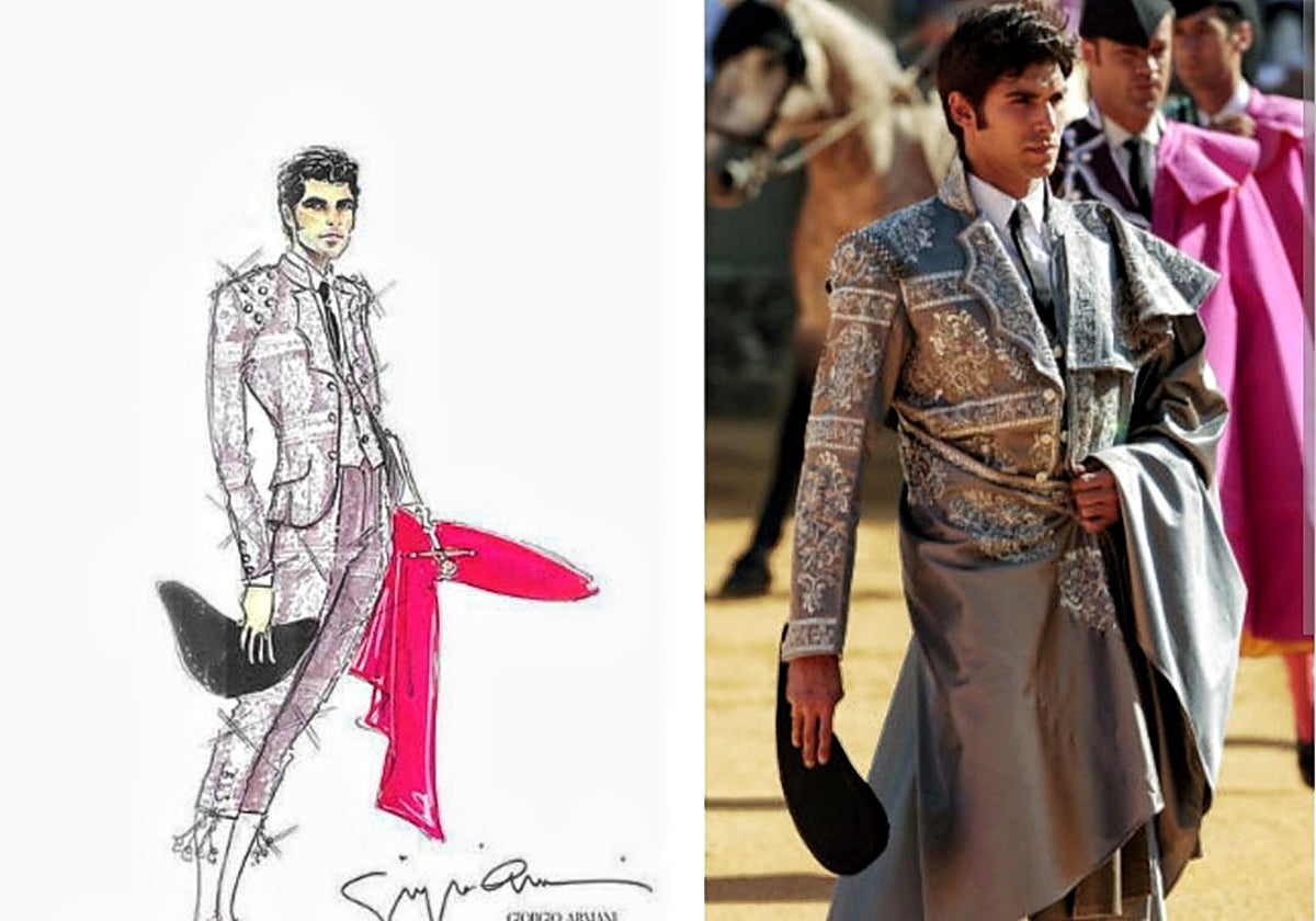 In October 2006, Giorgio Armani came to Valencia to open his boutique. It is believed that he asked to meet with Cayetano Rivera. At the meeting, the bullfighter from Ronda and the Italian designer discussed fashion and bullfighting traditions. Like Picasso had once done before, Giorgio Armani also wanted to create his own bullfighter's costume. The story goes that the designer proposed creating a ‘traje de luces’ (‘suit of lights’) for Rivera, which he could wear during the ‘feria goyesca’ bullfight.