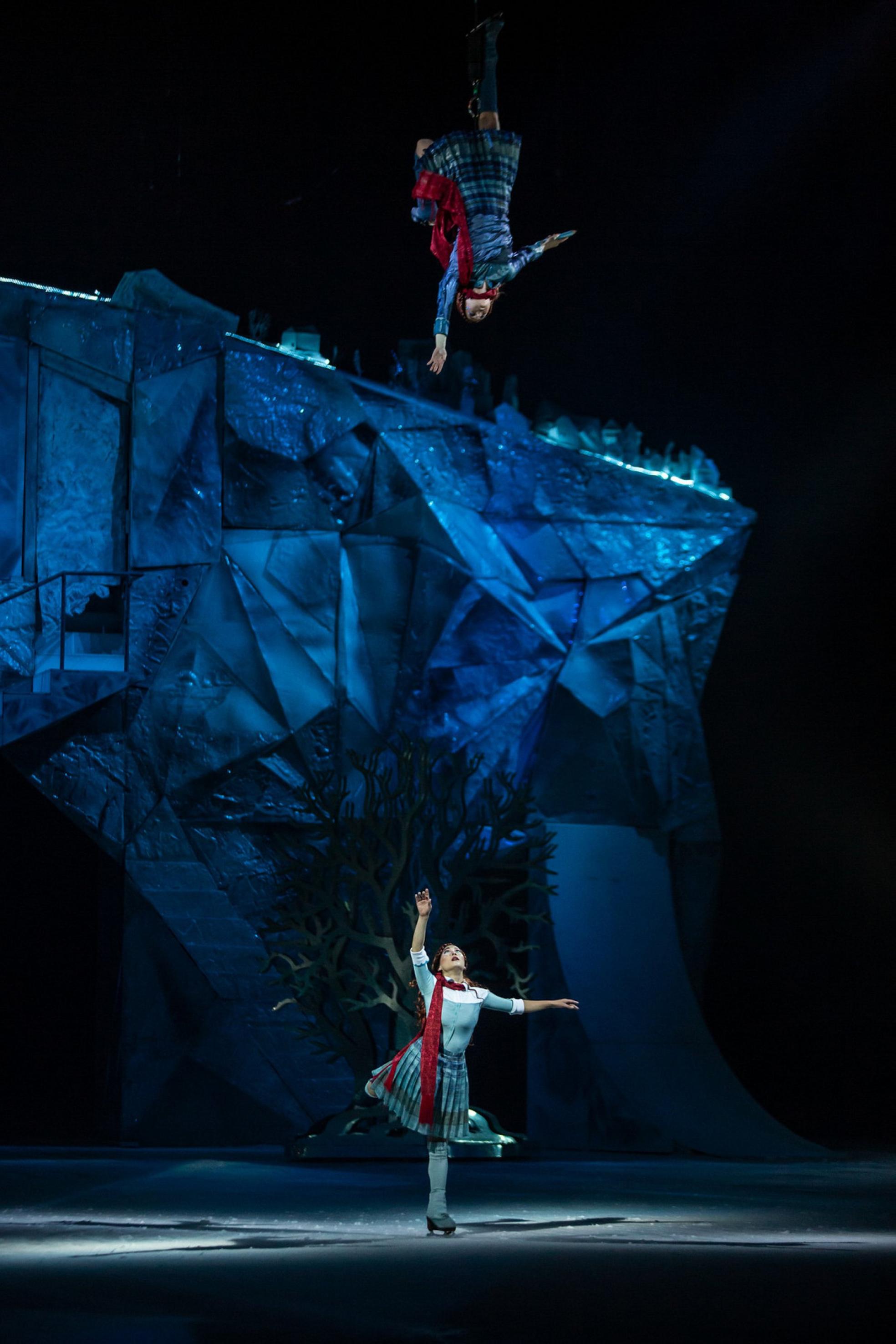 "We do the circus part very well, so when we thought about this new challenge, we focused on the skating which has a very distinct style that we've put our own spin on," says artistic director Rob Tannion, who makes juggling, trapeze stunts and extreme acrobatics possible on the slippery lake of ice on which Crystal is set.