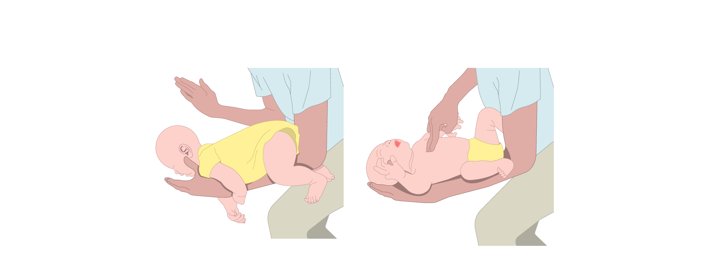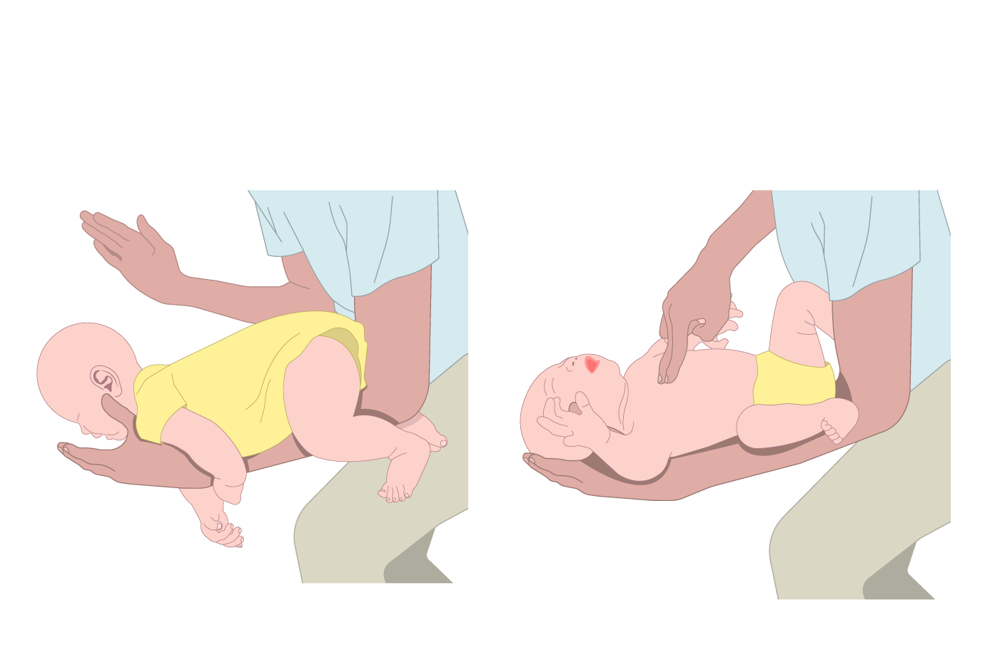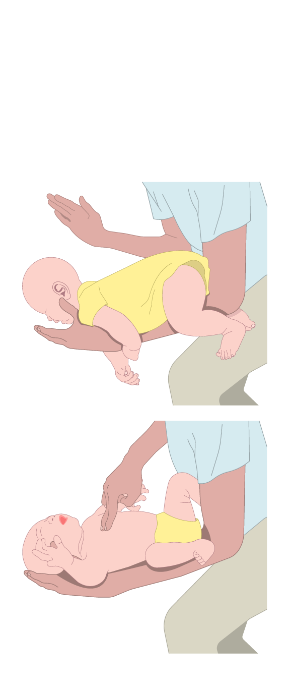 Where there's a severe upper airway obstruction by a foreign body and the infant is conscious, but not coughing up effectively, not breathing well and has an increasingly pallid colour.