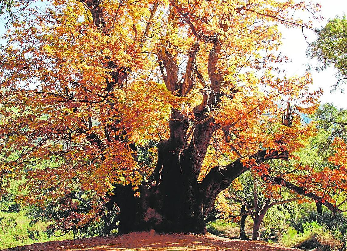 This exceptional chestnut tree is surrounded by holm and cork oaks in an area known as Hoyo del Bote, which is one of the most important forests in the Sierra Real, in the municipality of Istán.