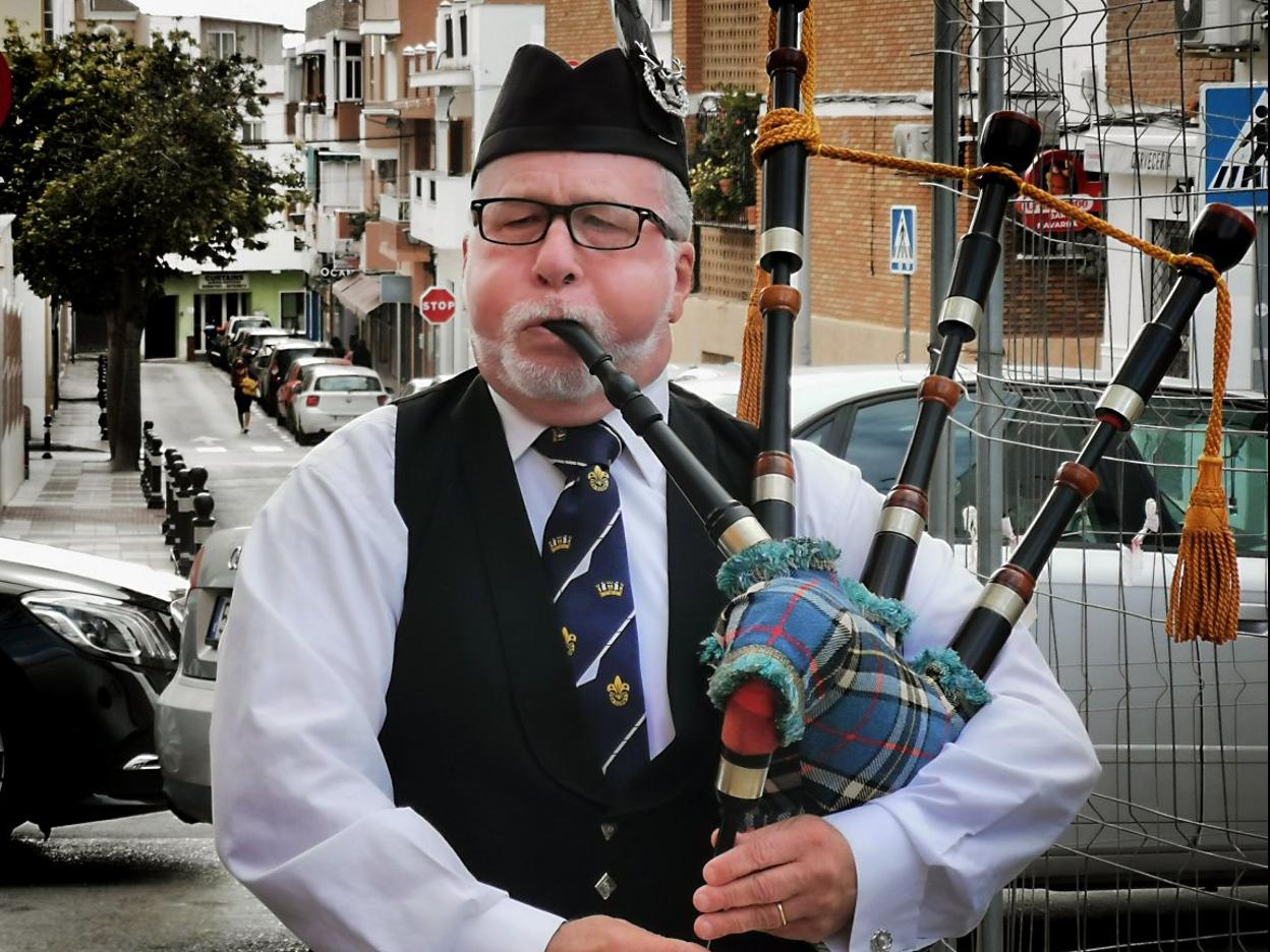Since setting up home in Spain, the former funeral director has promoted and taught the bagpipes here on the Costa del Sol and he has become a renowned figure within the world of pipe music in Andalucía.