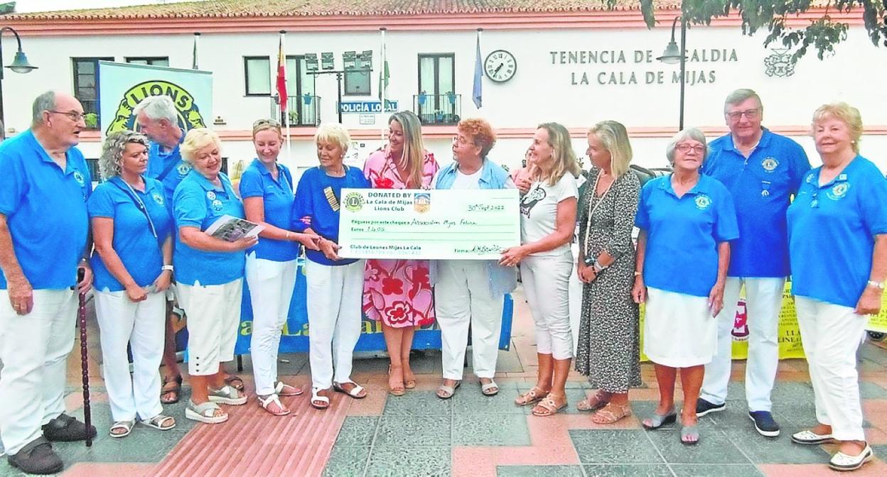 La Cala de Mijas Lions Club has recently presented a cheque for 1,400 euros to Mijas Felina, a charity that provides help and support to feral and abandoned cats. A Lions spokesperson said, "We are proud to provide financial support to this important local charity."