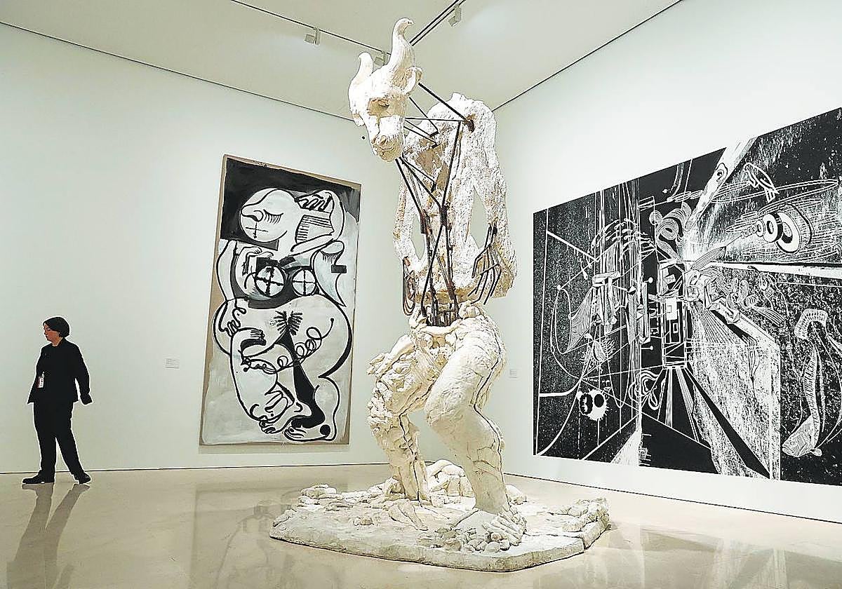 Picasso is inside all of the works in this exhibition; no one can, nor wants, to hide it. He is in the portrait of Dora Maar by Antonio Saura, in the immense minotaur by Thomas Houseago or one of the paintings from the series Martin Kippenberger devoted to Jacqueline.