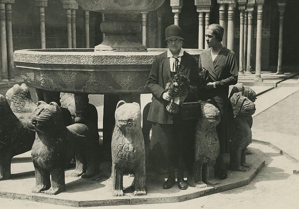 At the famous fountain, Marie Curie, modestly dressed, wearing a cloche hat, ‘posed’ for a photographer together with Eve. The scientist held a bouquet of flowers, which, apparently, was presented by the Alhambra administration during the reception.