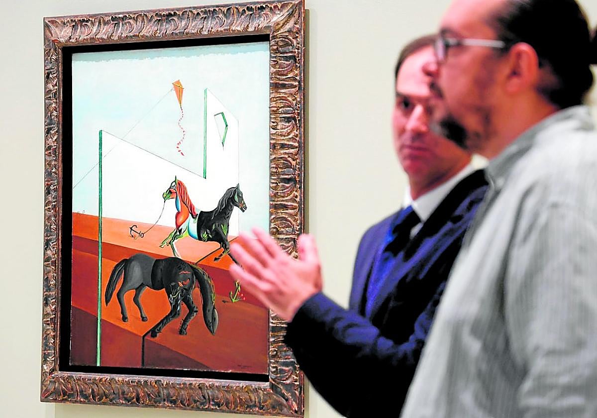 Le Dimanche o Rut Marin (1935) was chosen as the exhibition's cover. The canvas depicts horses dissected by a mirror which paradoxically doesn't separate the real from the surreal - both sides are extraordinary and fantastical. Domínguez's pure surrealism is considered the third most notable Spanish contribution to the international avant-garde movement, alongside Miró and Dalí.