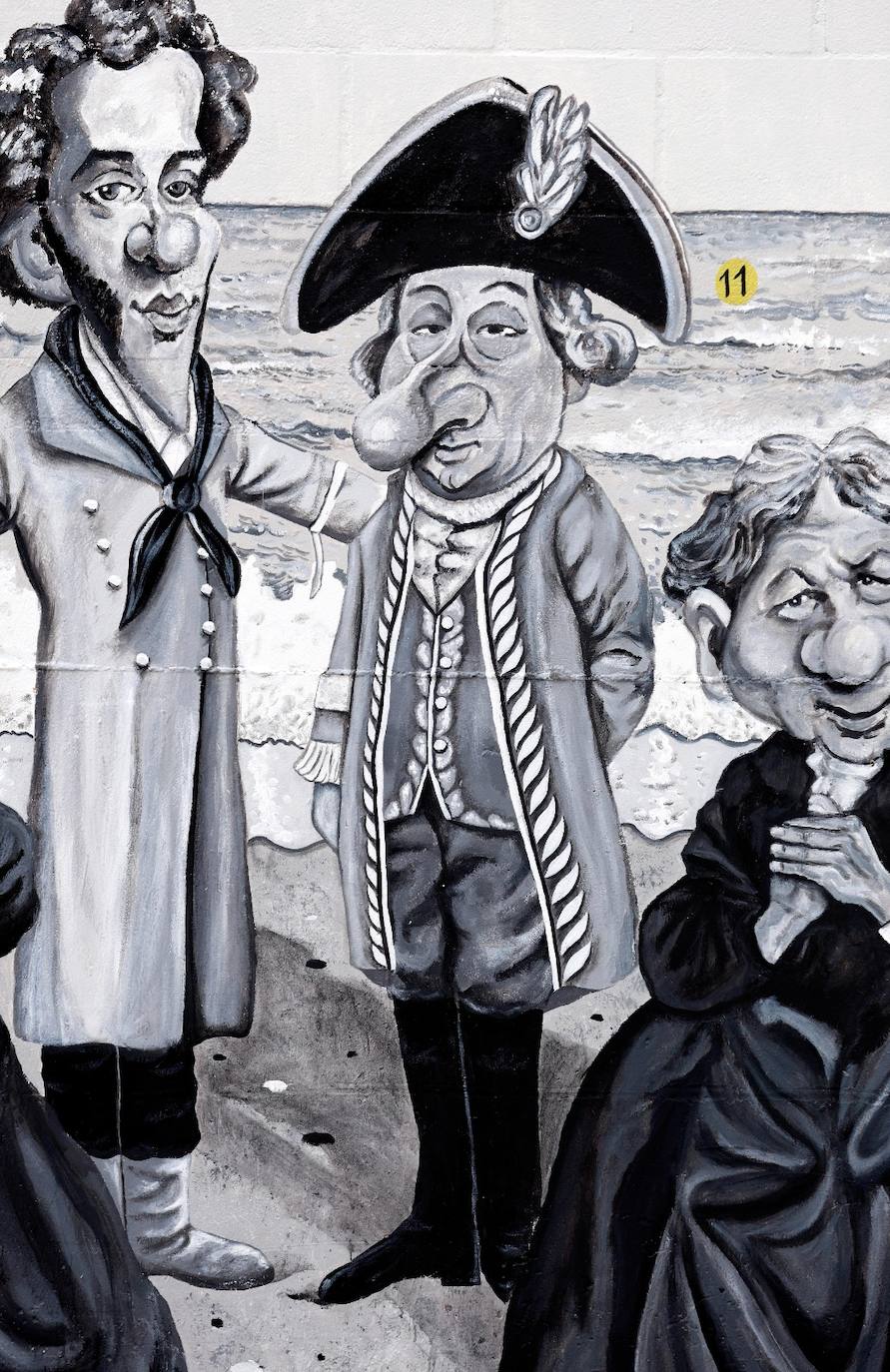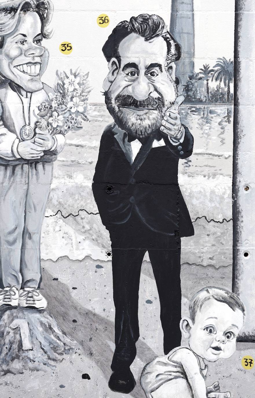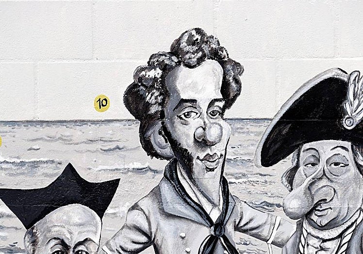 "Senator and Marquis, his image is the one that stands on the monument at the entrance to the street that bears his name, so we have put him on a pedestal of sand to include him in this mural that covers the city's coastline from the lighthouse to the big chimney known as 'Monica'."