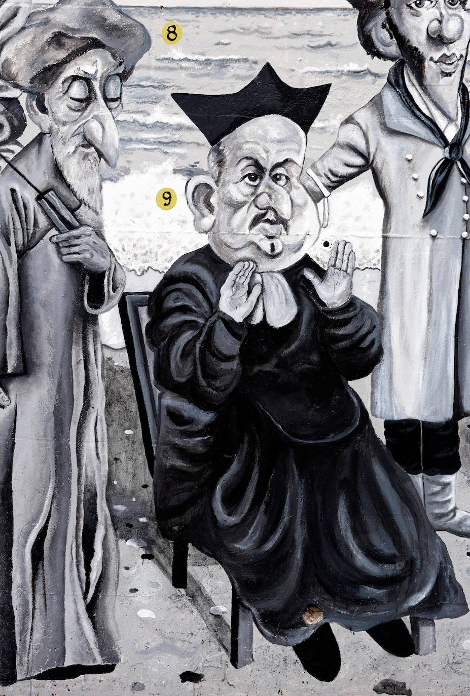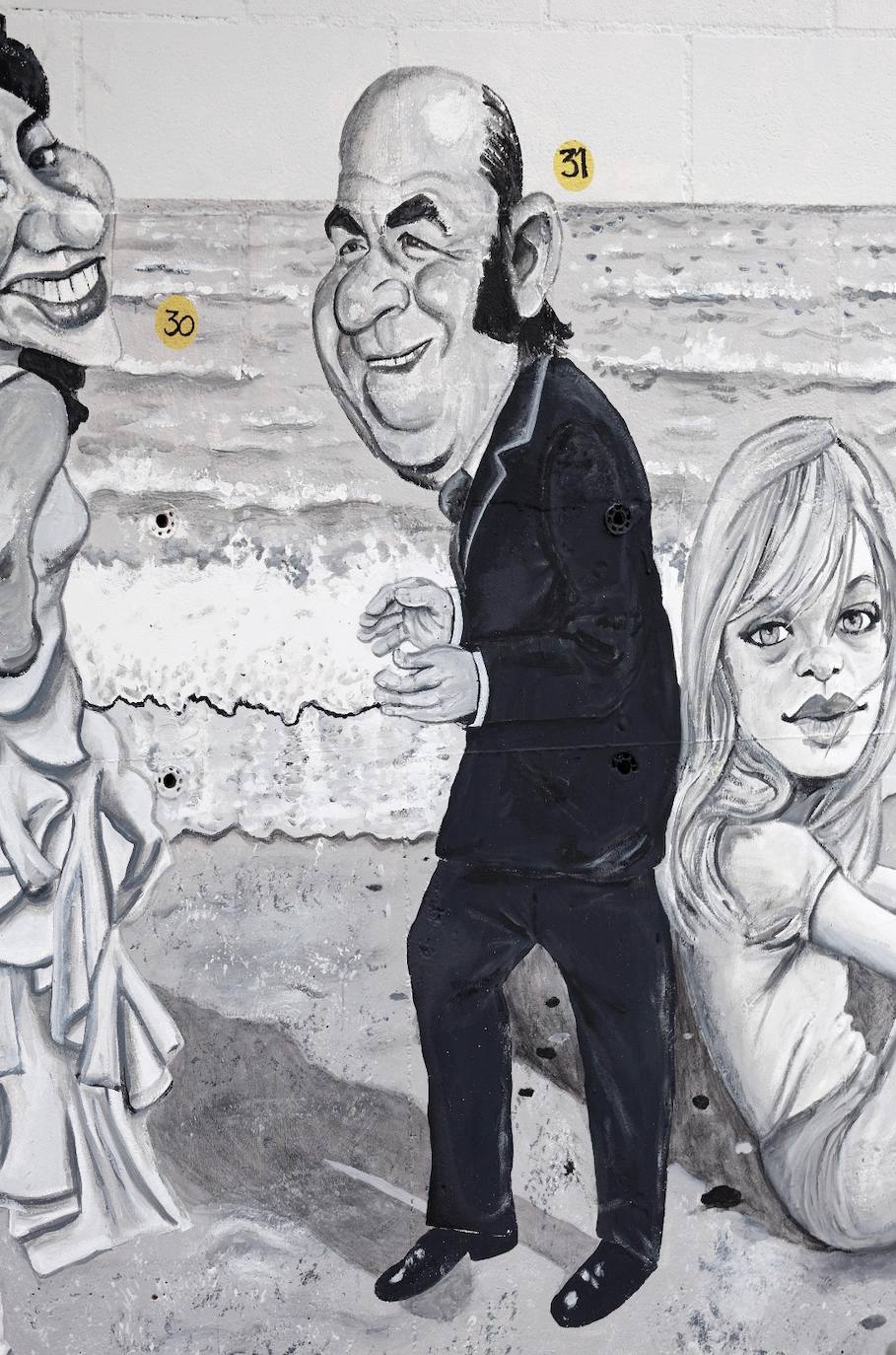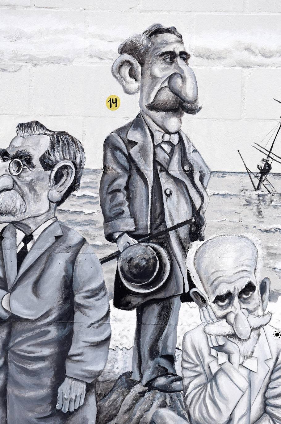 "Senator and Marquis, his image is the one that stands on the monument at the entrance to the street that bears his name, so we have put him on a pedestal of sand to include him in this mural that covers the city's coastline from the lighthouse to the big chimney known as 'Monica'."