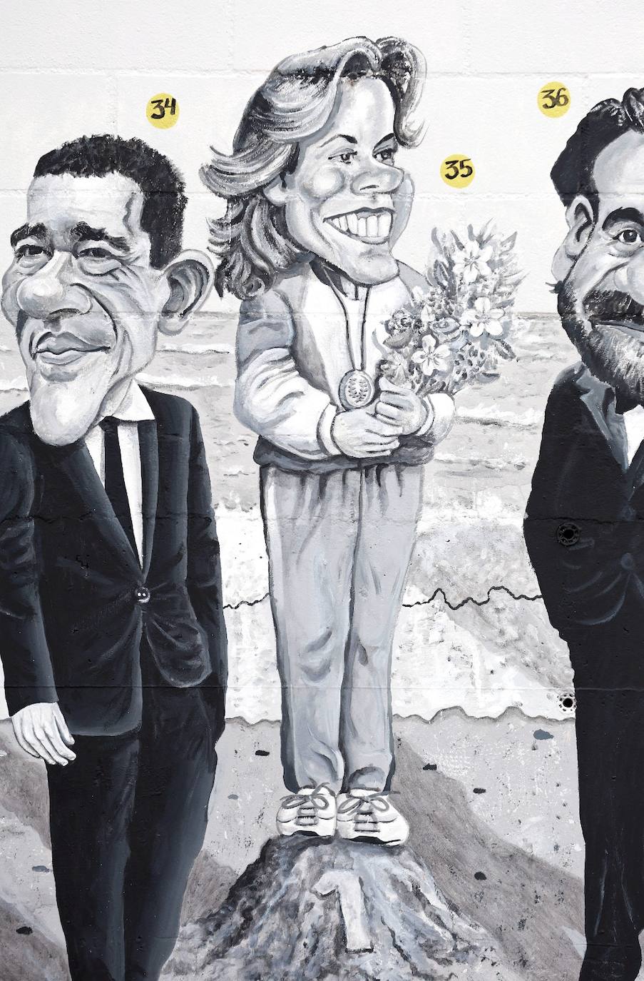 The Olympic sailing medallist also has her place in this list of illustrious Malagueños and appears on a mound of sand as a podium with the number 1.